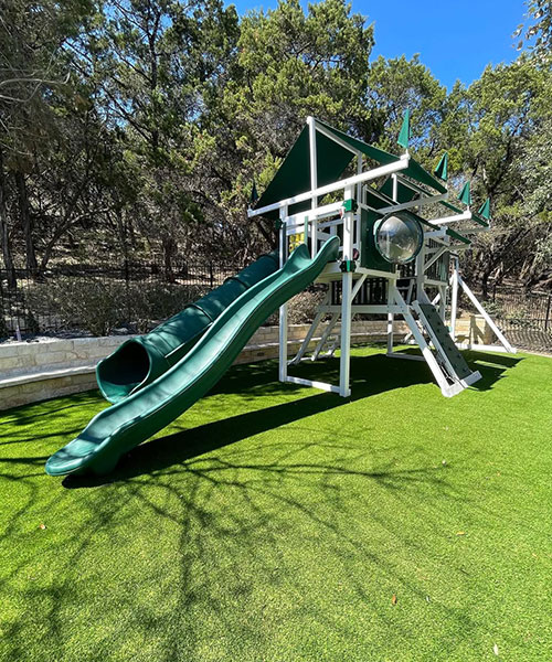 Playground turf provides a soft, cushioned surface that reduces the impact of falls. Options include shock-absorbing padding to enhance safety. It eliminates hard-packed dirt, hidden rocks, and mud, creating a cleaner, safer play area for kids of all ages.